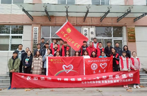 渭南师范学院化学与材料学院彩虹之约志愿者团队举办“衣旧情深、节用惜福”大型捐衣活动