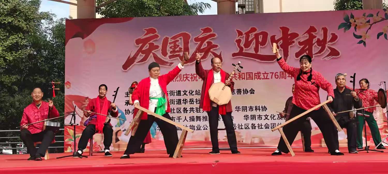9月29日,华阴市慈善协会联合华岳社区举行庆国庆文艺汇演。慈善文艺志愿者以舞蹈、大合唱、独奏、老腔等艺术形式向伟大祖国献上最诚挚的祝福。活动吸引22支慈善文艺志愿服务队约300余名演职人员参演。华阴...